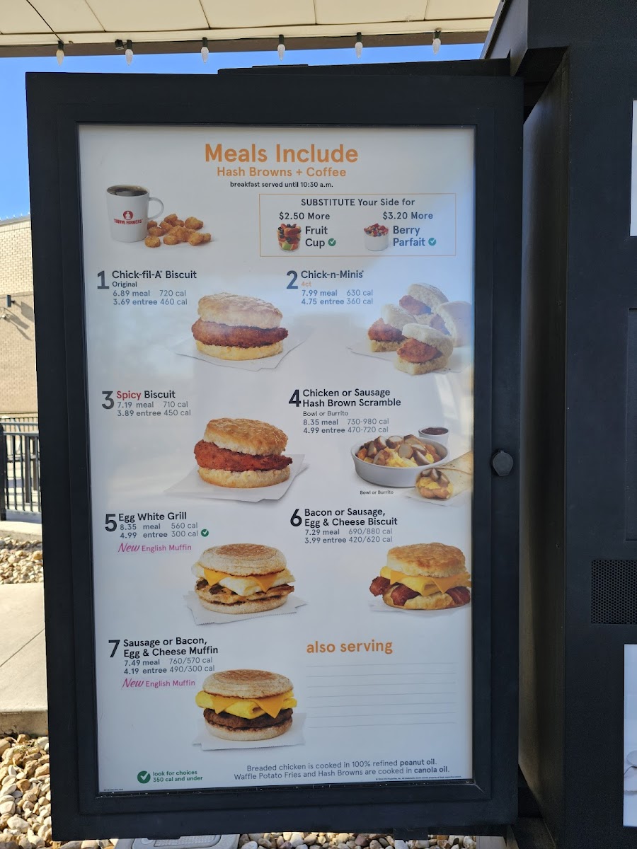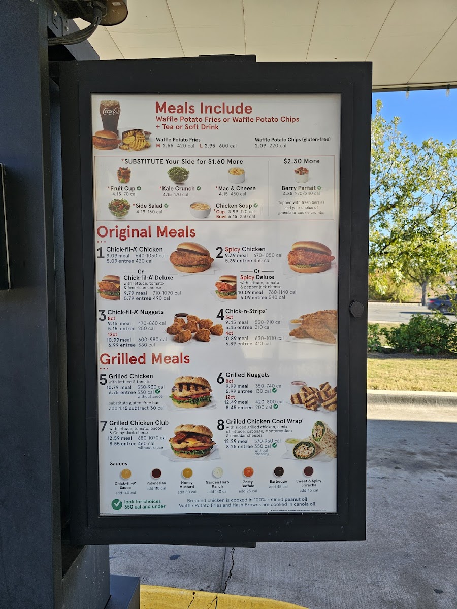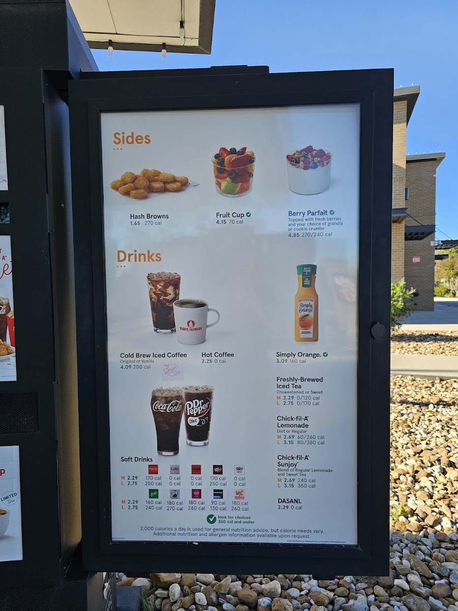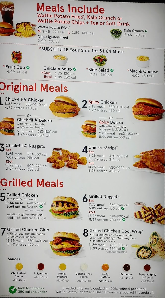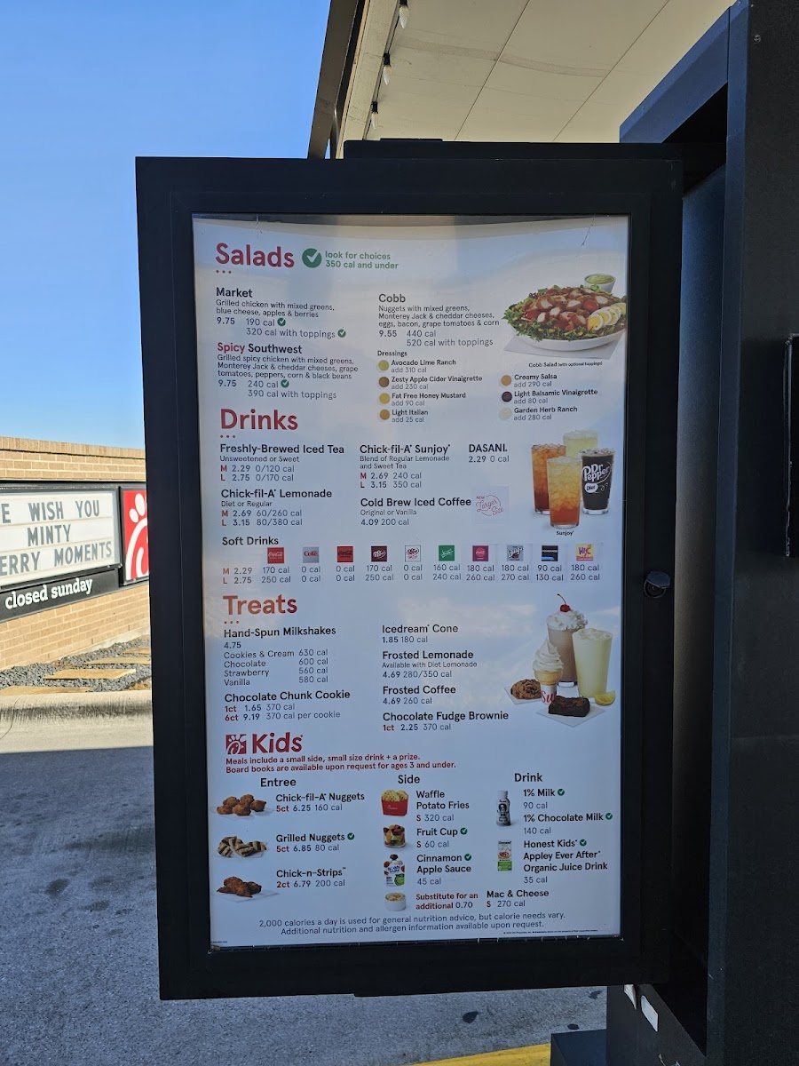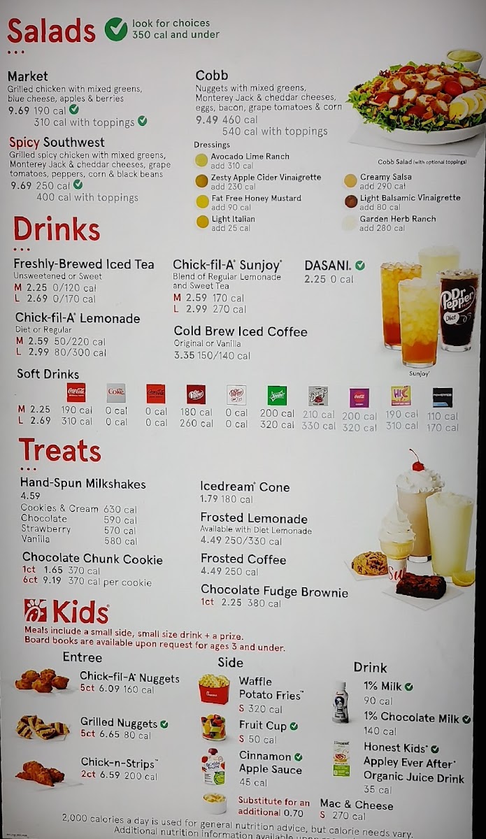 Beverages stay true to quality, with freshly brewed iced teas—both sweetened and unsweetened—and classic lemonade made from real lemon juice and cane sugar. Such attention to detail shows Chick-fil-A’s commitment to pairing their savory offerings with refreshing, thoughtfully made drinks. Overall, the menu feels inviting, consistent, and comforting, capturing the essence of a great family-friendly dining experience.